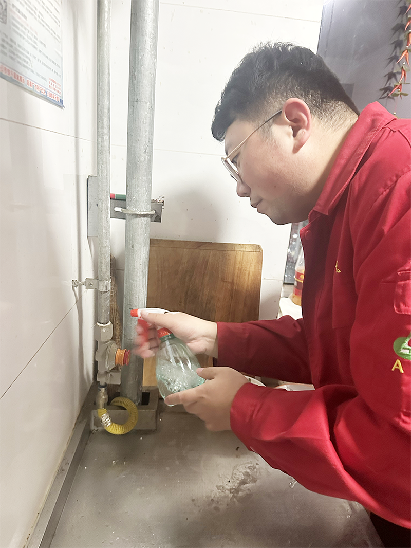 3.日??捎梅试硭蛳礉嵕畤娡吭谌?xì)夤艿赖慕宇^、閥門及燃?xì)忾_關(guān)等連接處進(jìn)行自檢自查,若有冒泡,則說明有漏氣。