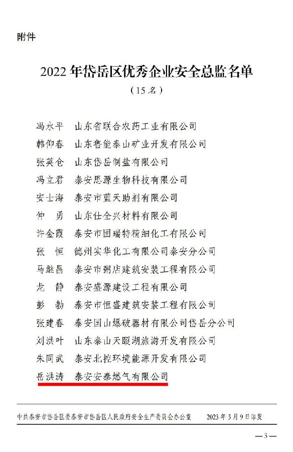 近期,在岱岳區(qū)優(yōu)秀企業(yè)安全總監(jiān)評選中,安泰燃?xì)夤景踩偙O(jiān)岳洪濤喜獲殊榮。下面請跟小編一同領(lǐng)略榜樣風(fēng)采。