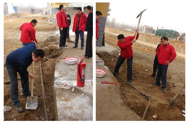搶修隊(duì)員現(xiàn)場(chǎng)清理作業(yè)帶與公司領(lǐng)導(dǎo)親自上陣開挖工作坑