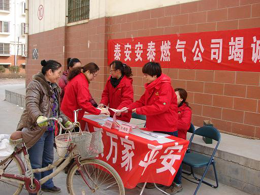 近年來隨著我市城市化進程腳步的加快,越來越多的舊村改造房拔地而建,天然氣作為生活能源已走進千家萬戶。然而安全用氣的意識和常識都未能達到廣范的普及和應(yīng)用。自安泰燃氣公司成立以來,始終積極組織各種公共場所和居民社區(qū)的燃氣安全宣傳主題活動,并借助這個平臺向廣大市民群眾大力宣傳、普及有關(guān)天然氣的法律、法規(guī)知識和安全用氣常識,受到了廣大民用戶的廣泛好評。