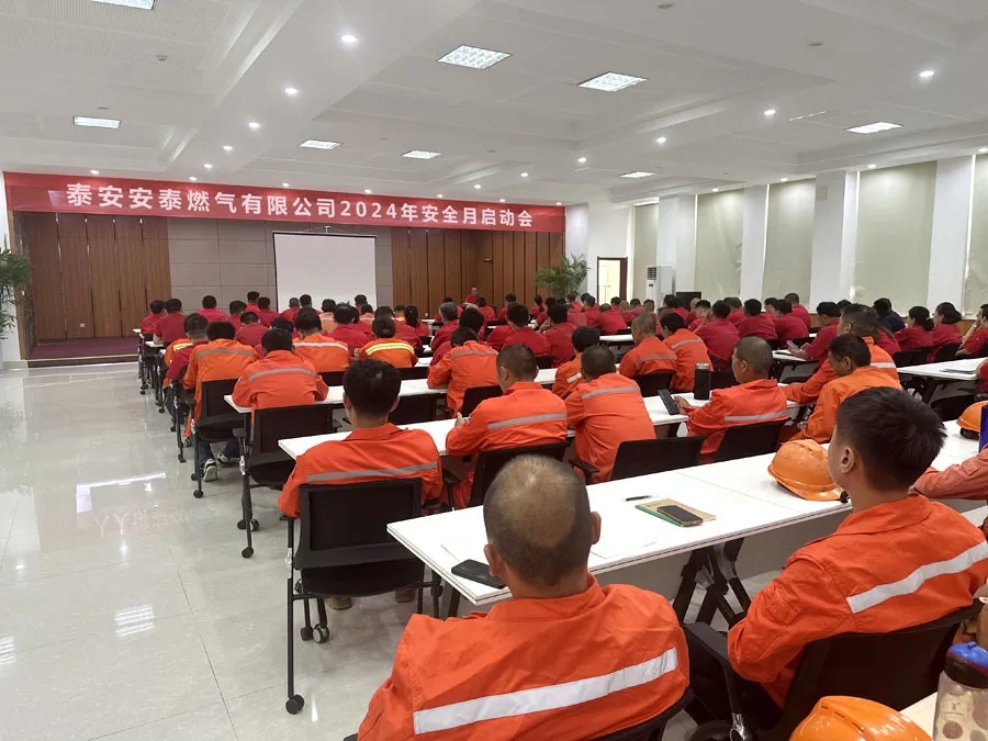 6月3日,泰安安泰燃?xì)庥邢薰揪o扣“人人講安全、個(gè)個(gè)會應(yīng)急—暢通生命通道”安全月活動主題,組織召開2024年安全月啟動會,公司不當(dāng)班人員及第三方施工單位人員100余人參加了會議。