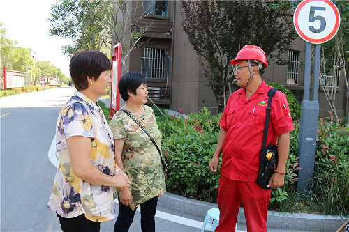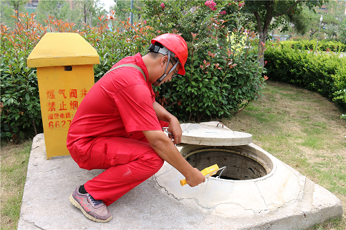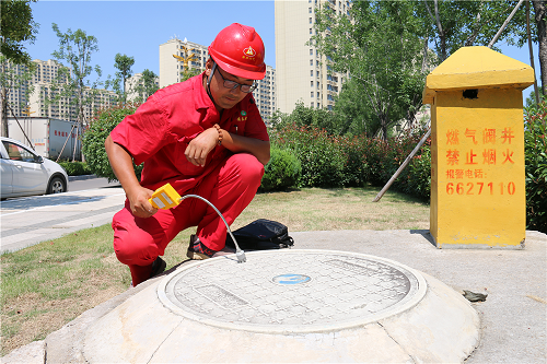 宋緒全是2007年通過(guò)競(jìng)聘上崗從泰山玻纖進(jìn)入安泰燃?xì)夤竟ぷ鞯?,刨除在兩站的工作時(shí)間,他擁有8年的巡線經(jīng)驗(yàn)。巡線工作使得他皮膚黝黑,也讓他養(yǎng)成了吃苦耐勞的精神和雷厲風(fēng)行的作風(fēng)。正是這樣,他成為管網(wǎng)部的一名“急先鋒”。宋緒全說(shuō),每天的工作是對(duì)公司管線進(jìn)行巡檢,對(duì)沿線供氣設(shè)備設(shè)施進(jìn)行查漏,發(fā)現(xiàn)管線保護(hù)范圍內(nèi)有施工跡象的,及時(shí)和施工方進(jìn)行聯(lián)系并協(xié)調(diào)處理,確保管線不被施工破壞。工具包內(nèi)有檢漏儀、卷尺和拉閥門井蓋的鐵拉鉤。在這炎熱的夏天,人們空手在烈日下行走尚且汗流浹背,何況他還要隨身背著工具包。小區(qū)樓下,看到幾位剛買菜回來(lái)的老人,宋緒全上前攀談,一再叮囑用氣安全常識(shí)。隨后他又檢查小區(qū)里的調(diào)壓器、入戶管和燃?xì)忾y門井,這是他每天都要重復(fù)的工作。