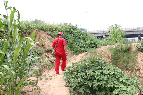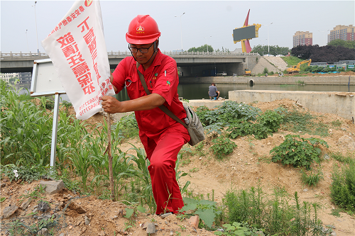 讓巡線員最不放心的,就是隨處可見(jiàn)的施工工地。盡管他們會(huì)與工地方主動(dòng)聯(lián)系,給施工方提供燃?xì)夤艿牢恢?、走向及埋深,并在現(xiàn)場(chǎng)監(jiān)護(hù),但是總有一些施工單位不重視,私自開(kāi)挖、野蠻施工,這也是導(dǎo)致天然氣泄漏的主要原因。在泮河河道改造現(xiàn)場(chǎng),由于現(xiàn)場(chǎng)開(kāi)挖涉及燃?xì)夤艿腊踩?,宋緒全對(duì)管道上方做警示標(biāo)識(shí),并一再叮囑現(xiàn)場(chǎng)施工管理人員,尤其挖掘機(jī)司機(jī)注意管道安全,防止施工機(jī)械對(duì)燃?xì)夤艿涝斐蓳p壞。因各類施工繁多,巡線的工作重心就側(cè)重于施工現(xiàn)場(chǎng)巡查及監(jiān)護(hù),“白加黑,五加二”的模式,在他眼中看來(lái)是再尋常不過(guò)的事。從去年開(kāi)始,他們還專門對(duì)警示樁進(jìn)行了補(bǔ)栽。