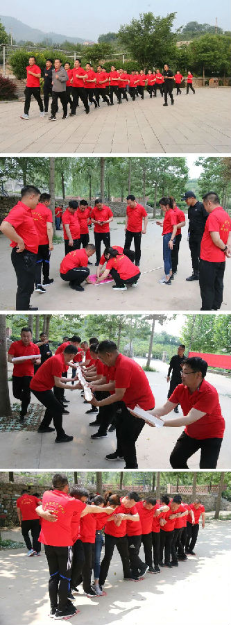 為期兩天的拓展訓(xùn)練從破冰團(tuán)建開始,兩支團(tuán)隊(duì)集思廣益,定隊(duì)名、想口號、畫隊(duì)徽、練隊(duì)歌,在各具特色的團(tuán)隊(duì)介紹中一一亮相。在“搶渡金沙江”“和諧發(fā)展”“中國速度”“團(tuán)隊(duì)共贏”拓展訓(xùn)練環(huán)節(jié)中,大家相互加油,相互鼓勵,共同配合完成了一個(gè)個(gè)極具挑戰(zhàn)的項(xiàng)目。挑戰(zhàn)激情及成功喜悅的共同分享,讓每一位成員大大提高了組織力、信任度、領(lǐng)導(dǎo)力、執(zhí)行力、有效溝通和團(tuán)隊(duì)協(xié)作等與工作息息相關(guān)的管理意識。訓(xùn)練結(jié)束后,大家共同觀看了紅色影片《建黨偉業(yè)》。