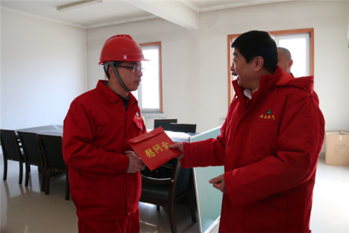 2016年已滿載碩果駛過,2017年的鐘聲將在神州大地上回蕩。1月26日臘月廿九,安泰燃?xì)夤径麻L(zhǎng)、總經(jīng)理賀國(guó)防、常務(wù)副總佟慶等一行趕赴生產(chǎn)一線,向春節(jié)期間堅(jiān)守在一線工作崗位上的員工表示慰問,為他們送去節(jié)日的問候和新春的祝福。
