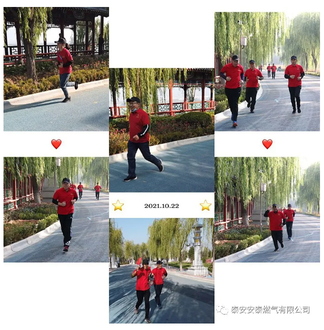 10月22日上午,泰安安泰燃?xì)庥邢薰尽皹放芪骱そ】敌小被顒蛹で殚_跑,來自公司的近30名干部職工歡聚泰安西湖景區(qū),用汗水揮灑激情,以拼搏篤定前行,通過健跑方式汲取奮進力量。泰山玻纖黨委委員、副總經(jīng)理、安泰燃?xì)舛麻L趙恒剛參加本次活動。