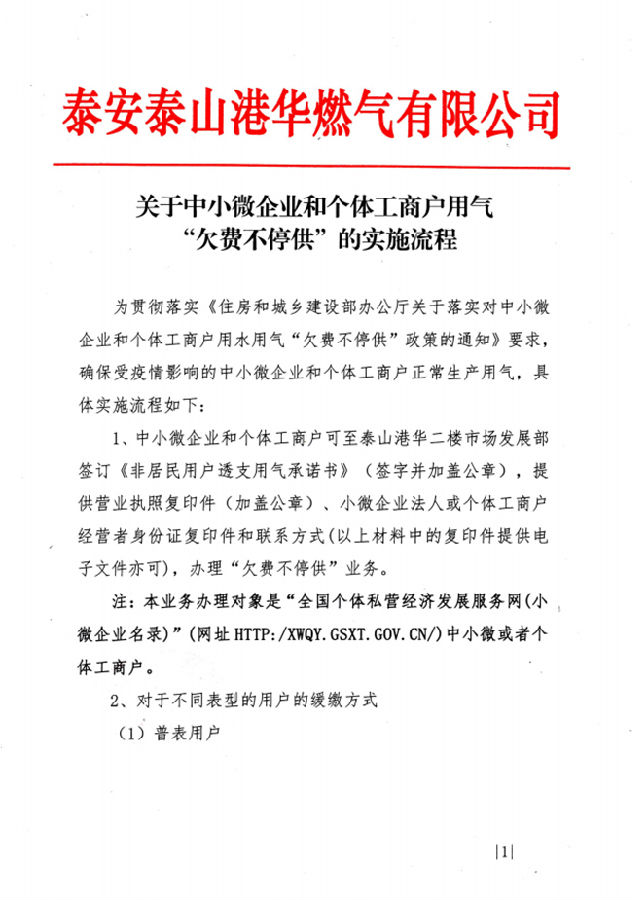 關(guān)于中小微企業(yè)和個(gè)體工商戶用氣“欠費(fèi)不停供”的實(shí)施流程