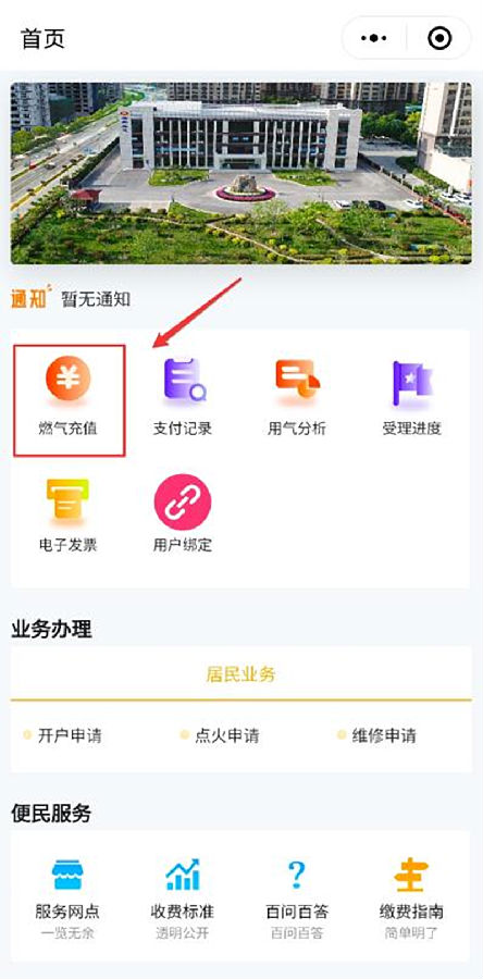 ?   非IC卡用戶點擊首頁的“燃氣充值”,會直接跳轉(zhuǎn)至繳費詳情頁面,可直接點擊頁面預設(shè)定的充值金額進行整數(shù)金額繳費,或在“其他金額”處填寫指定金額進行繳費。